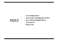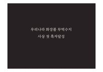 목차 1. 우리나라 화장품 무역수지 2. 제1위 시장 중국, 세계 화장품 브랜드의 격전지 3. 중국 소비자의 한국 화장품에 대한 인식 4. 소비세 조정 이슈 5. 결론 및 시사점 본문 중국의 화장품 소비규모 ☞ 국민소득 증가 및 미용에 대한 관심도 증가 ☞ 중국 화장품 시장은 연평균 20% 이상 고성장. ☞ 2018년 2,668억 위안 규모 전망 1. 한국의 화장품이 무역수지의 흑자 달성에 기여함으로써 성장가능성을 나타냄 2. 중국 내에서의 높은 인지도로 인한 시장의 성장, 韓 – 中 상호 투자폭 증가 3. 소비세와 관세 인하로 인한 효과 예상 4. 향후 중국에 소비트렌드에 맞는 다양한 시도로 중국 시장을 공략해나가야 <중략> 결론 및 시사점 1. 한국의 화장품이 무역수지의 흑자 달성에 기여함으로써 성장가능성을 나타냄 2. 중국 내에서의 높은 인지도로 인한 시장의 성장 , 韓 – 中 상호 투자폭 증가 하고 싶은 말 한국 화장품의 대 중국무역 키워드 한국 화장품의 대 중국무역, 한국화장품, 한국화장품 중국무역, 한국화장품 중국진출, 화장품 중국 |