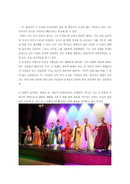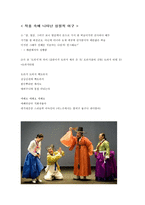 본문 < 작가와 작품 세계 연구 > <맹진사댁 경사>는 오영진의 대표작이자 민족정서를 표현한 극으로 높이 평가 받아왔다. 이 점에 대해서 많은 연구자들이 구체적인 작품분석을 통하여 해명하고자 하였다. 대부분의 연구자들은 전통수용 문제에 대하여 천착하였으며, 그 결과 '구렁덩덩 신선비' 설화, '춘향전', '단군신화'와의 관련성 등 다양한 견해가 제출되었다. 여기서 1943년의 상황에서 전통적인 소재를 작품의 근간으로 삼았다는 사실을 고려해볼 필요가 있다. 이것은 소극적인 경우와 적극적인 경우로 나누어 생각해볼 수 있다. 먼저 소극적인 경우는 당시의 정치적인 상황과 관련하여 친일적인 목적극만을 작품의 소재로 취할 것을 강요당했던 사실을 들 수 있다. "일제 말 군국주의 하에서 아무 것도 쓸 수 없어서 <맹진사댁 경사>와 <배뱅이굿>을 썼다"는 오영진의 증언에 비추어 보아 현실에서 소재를 취하지 않음으로써 어느 정도 일제의 강압에서 벗어날 수 있었을 것이다. 또한 적극적인 의미에서의 전통의 추구이다. 오영진이 전통과 민속적인 것에 대해 각별한 관심이 있었음은 그의 자전적인 수필을 통해 쉽게 확인할 수 있다. 그는 전통에 대한 관심을 확산시켜 전통적인 소재를 작품화함으로써 민족의 원형적인 심성과 고유의 사상을 현대화하는 작업을 의미 있게 생각한 것이다. 특히 <맹진사댁 경사>에서는 세상에 유전하는 민담을 작품의 소재로 삼음으로써 공동의 민족의식을 확인하고자 하는 의도를 가졌을 것이다. 이는 해방 이후에도 <맹진사댁 경사>를 지속적으로 개작하고 무대화 영화화했던 점을 고려하면 그 타당성이 인정된다. 또한 결과적인 측면에서도 <맹진사댁 경사>가 지금까지도 대중에게 친숙하게 향유되고 있다는 사실을 생각해볼 때 오영진의 민족의식의 추구는 일면적으로는 성공했다 할 것이다. 하고 싶은 말 레포트 입니다. 키워드 경사, 맹진, 사댁, 인물, 맹진사댁, 분석 |