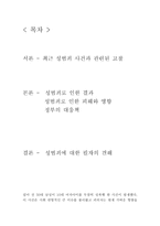 목차 서론 - 최근 성범죄 사건과 관련된 고찰 본론 - 성범죄로 인한 결과 성범죄로 인한 피해와 영향 정부의 대응책 결론 - 성범죄에 대한 필자의 견해 본문 얼마 전 50대 남성이 10대 여자아이를 무참히 성폭행 한 사건이 발생했다. 이 사건은 사회 반항적인 큰 이슈를 불러왔고 피의자는 현재 가벼운 형량을 받은 채 형을 지내고 있다. 피해자인 여자아이는 여자로써 더 이상 제 기능을 쓸 수 없을 정도로 성기가 파열되 치료를 받고 있는 중이다. 또한 정신적으로 미성숙한 어린아이에게 범죄를 저지름으로써 피해자는 평생 지워지지 않을 기억을 지니고 살아가야 한다. 이 사건에 대해서 많은 국민들이 성토하고 울분에 가득차 있었다. 그러나 재판부에서 내려 온 결론은 겨우 형량 12년 형. 이에 대해 우리는 한국사회는 성범죄에 대해 재조명 할 필요가 있다. 하고 싶은 말 레포트 입니다. 키워드 현세태, 성범죄, 고찰 |