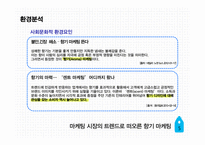 목차 1. 광고 상황 분석 1) 환경 분석 2) 시장 분석 3) 제품 분석 4) 소비자 분석 5) 광고 분석 6) SWOT 분석 7) 문제점 및 기회점 2. 광고 기본 전략 1) 광고목표 설정 2) 광고목표 소비자 설정 3) 광고 컨셉 4) 광고 예산 설정 3. 광고 크리에이티브 전략 1) 광고 크리에이티브 목표 2) 광고 크리에이티브 컨셉 3) 광고 크리에이티브 전략 4) 광고 크리에이티브 전술 4. 광고 매체 전략 1) 광고 매체 목표 2) 광고 매체 분석 3) 광고 매체 전략 4) 광고 매체 전술 본문 환경분석 - 사회문화적 환경요인 화장품 시장은 지금 '성분'각축전 중! 화장품 업계 트렌드가 성분 중심으로 변한 지 오래다. 환경오염으로 인한 유해환경의 노출과 스트레스, 자연보호에 대한 중요성이 높아지며 현대인들의 라이프에서 웰빙&오가닉 트렌드가 시작됐다. (중략) 이미 뷰티 마니아들 사이에서 천연 원료만 함유된 순수한 자연 뷰티 '오가닉'에 열광했고 일반 소비자들 역시 유기농 인증기관을 통해 원료의 안전성을 입증한 제품에 큰 관심을 갖기 시작했다. 소비 침체 속에서도 친환경과 자연주의를 내세운 제품들은 꾸준히 소비자들로부터 인기를 얻고 있다. → 자연성분을 내세운 제품들이 소비자들로부터 꾸준히 인기를 얻고 있음 불안,긴장 해소 – 향기 마케팅 뜬다 상쾌한 향기는 기분을 좋게 만들지만 지독한 냄새는 불쾌감을 준다. 이는 향이 사람의 심리를 자극해 긍정 혹은 부정적 영향을 미친다는 것을 의미한다. 그러면서 등장한 것이 향기(Aroma) 마케팅이다. 하고 싶은 말 P&G.다우니 섬유유연제광고 커뮤니케이션 전략 기획서 키워드 P&G.다우니 섬유유연제광고 커뮤니케이션 전략 기획서, 다우니, p&g, P&G.다우니 섬유유연제광고 커뮤니케이션 전략 기획서, 광고기획서 |